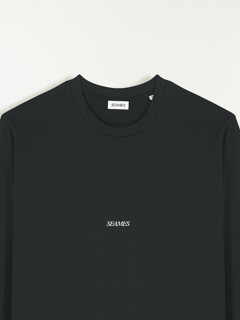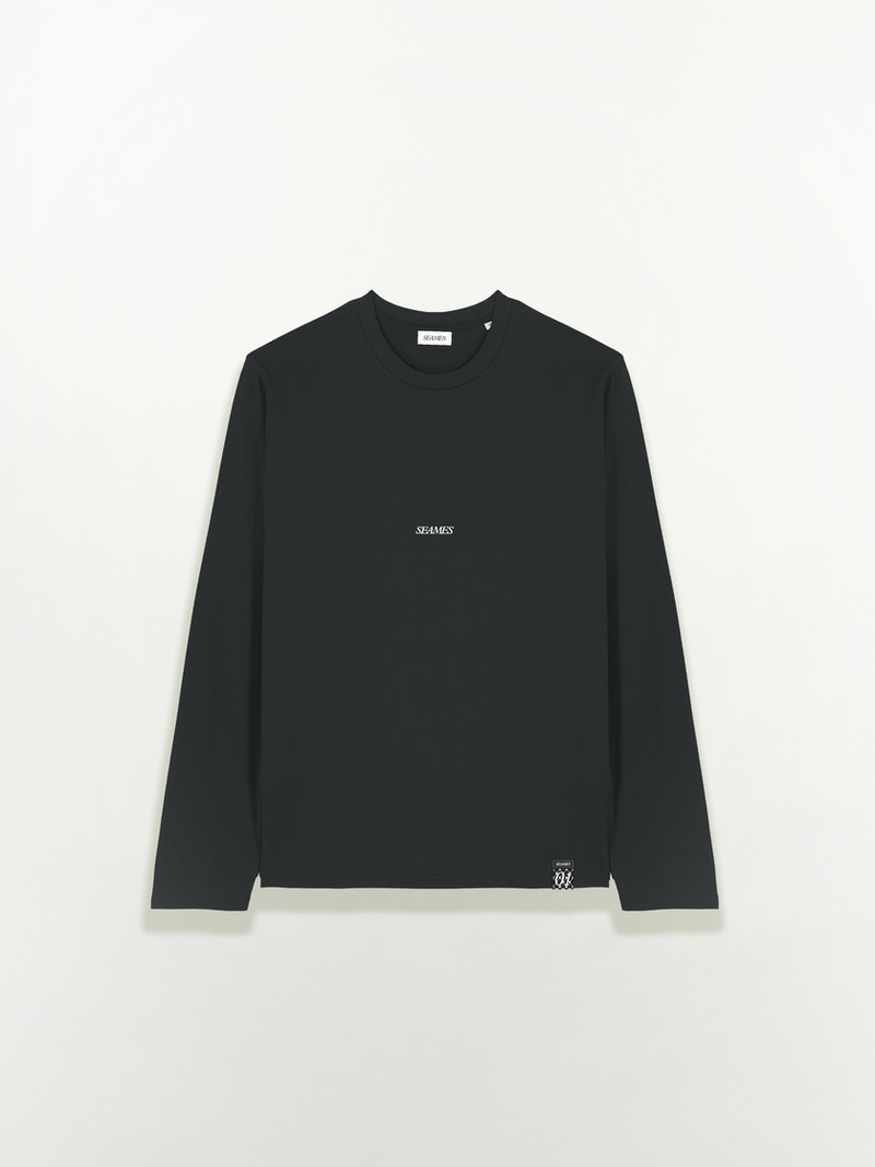 Organic Cotton Long Sleeve Tee In White w/ Embroidered Logo & '01' Hem Label